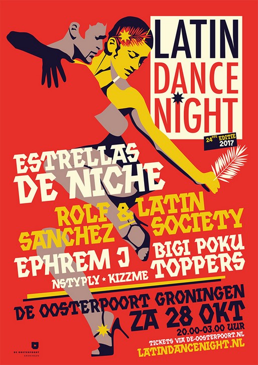 Op zaterdag 28 oktober is het dansen geblazen in De Oosterpoort. Tijdens de 24ste editie van Latin Dance Night zorgen (inter)nationale Latin-sterren, DJ’s en dansers voor tropische sferen in herfstig Groningen. Bereid je voor op de jaarlijkse dosis salsa, son, timba, merengue, bachata, kizomba, ritmo kombina, kaseko y mas! Wervelende Latinshows en ’s middags swingende dansworkshops (gratis op vertoon van je LDN ticket!) maken het programma compleet. Dat betekent traditiegetrouw voetjes van de vloer, en samen genieten. Het live programma is compleet: Estrellas de Niche, Rolf Sanchez & Latin Society, Ephrem J, Bigi Poku Toppers, NSTYPLY en KizzMe laten je dansen tot je benen niet meer kunnen. ¡Hasta pronto!